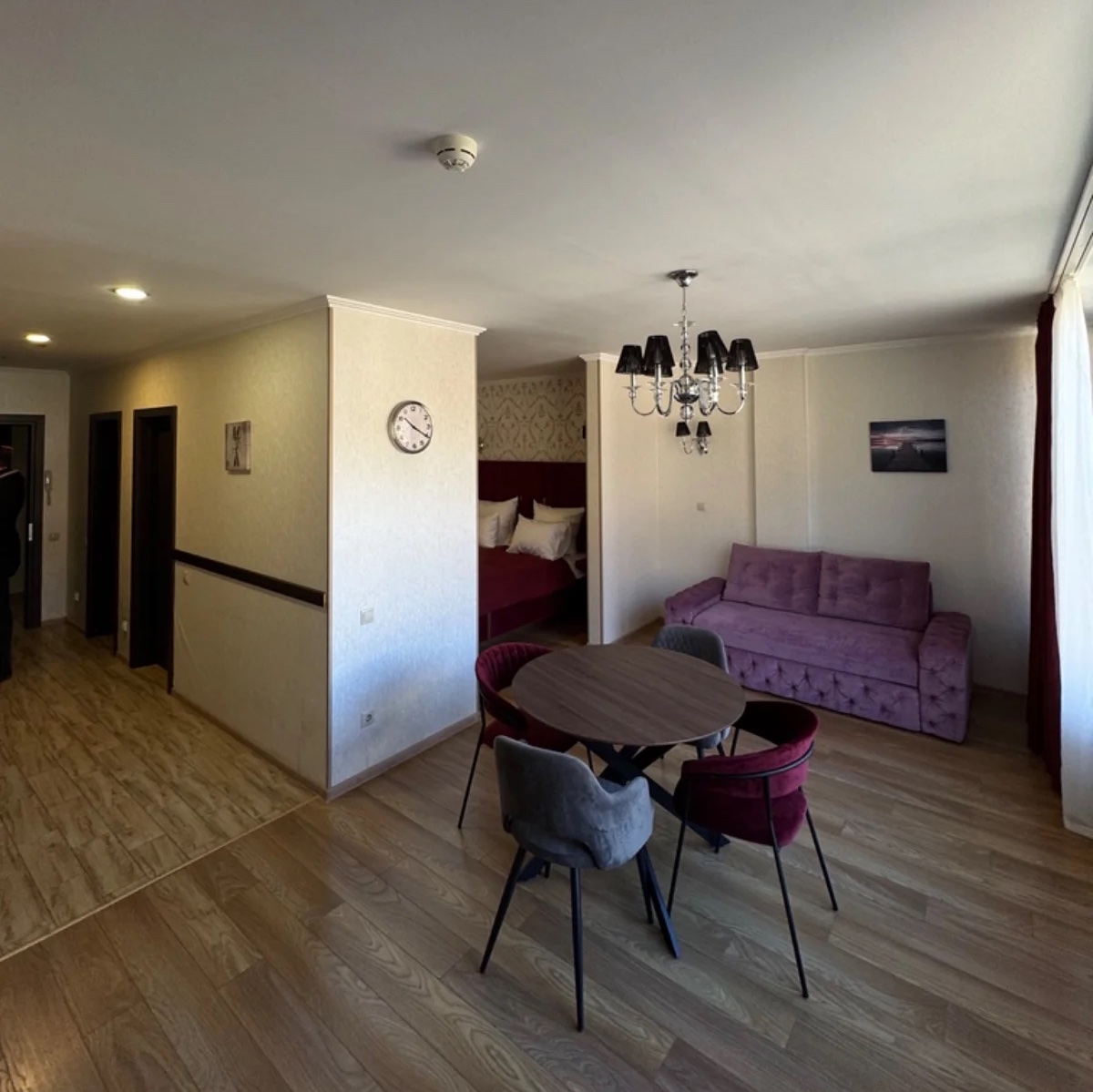 Наши комфортабельные квартиры находятся на 3-м этаже Фамильного дома «Династия», с 2015 года предлагающего гостям курорта безупречную комбинацию из коллекции редких вин и авторской кухни.